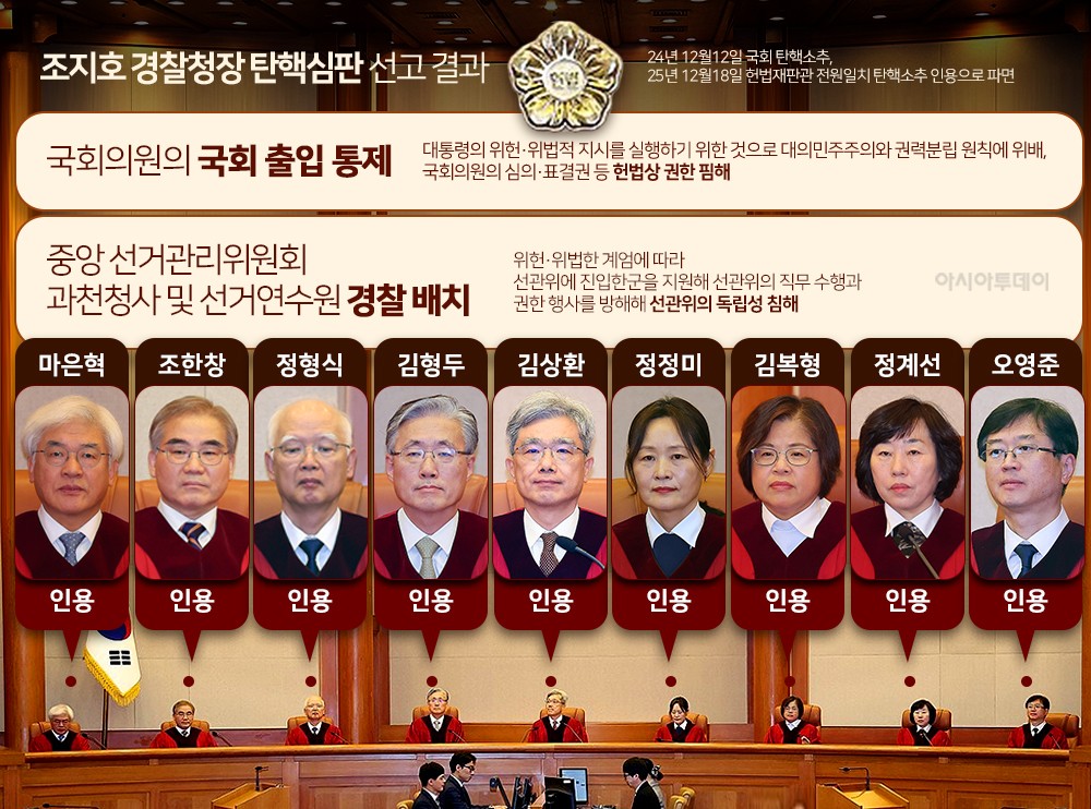 헌재, 조지호 경찰청장 파면…재판관 전원일치 탄핵 인용